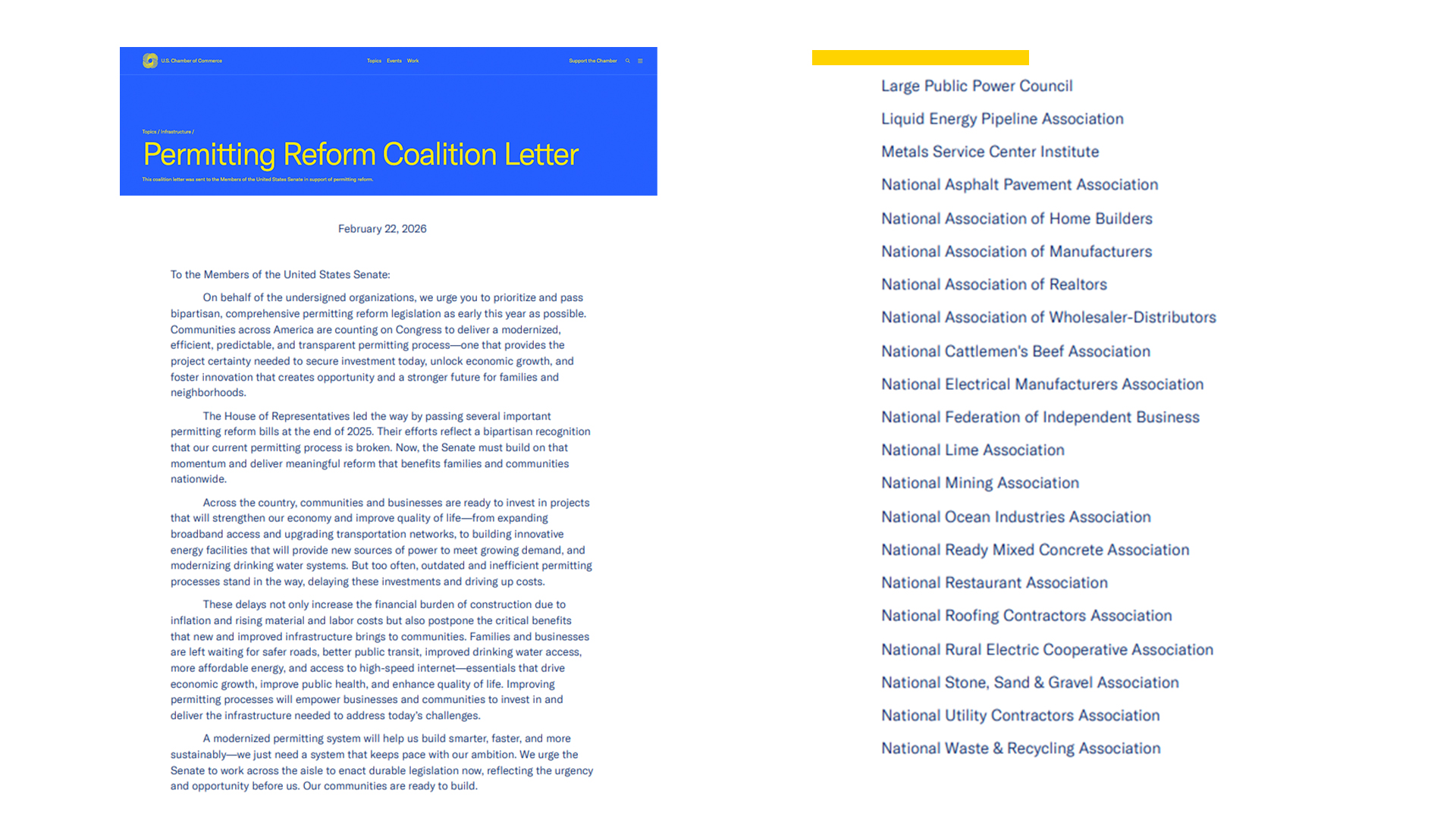 On February 22, LPPC joined 600 organizations nationwide in co-signing a U.S. Chamber of Commerce letter to the United States Senate urging immediate, bipartisan permitting reform.America’s infrastructure buildout cannot wait. We need transparent, predictable, and durable federal permitting processes that ensure all critical infrastructure proposals receive timely consideration.